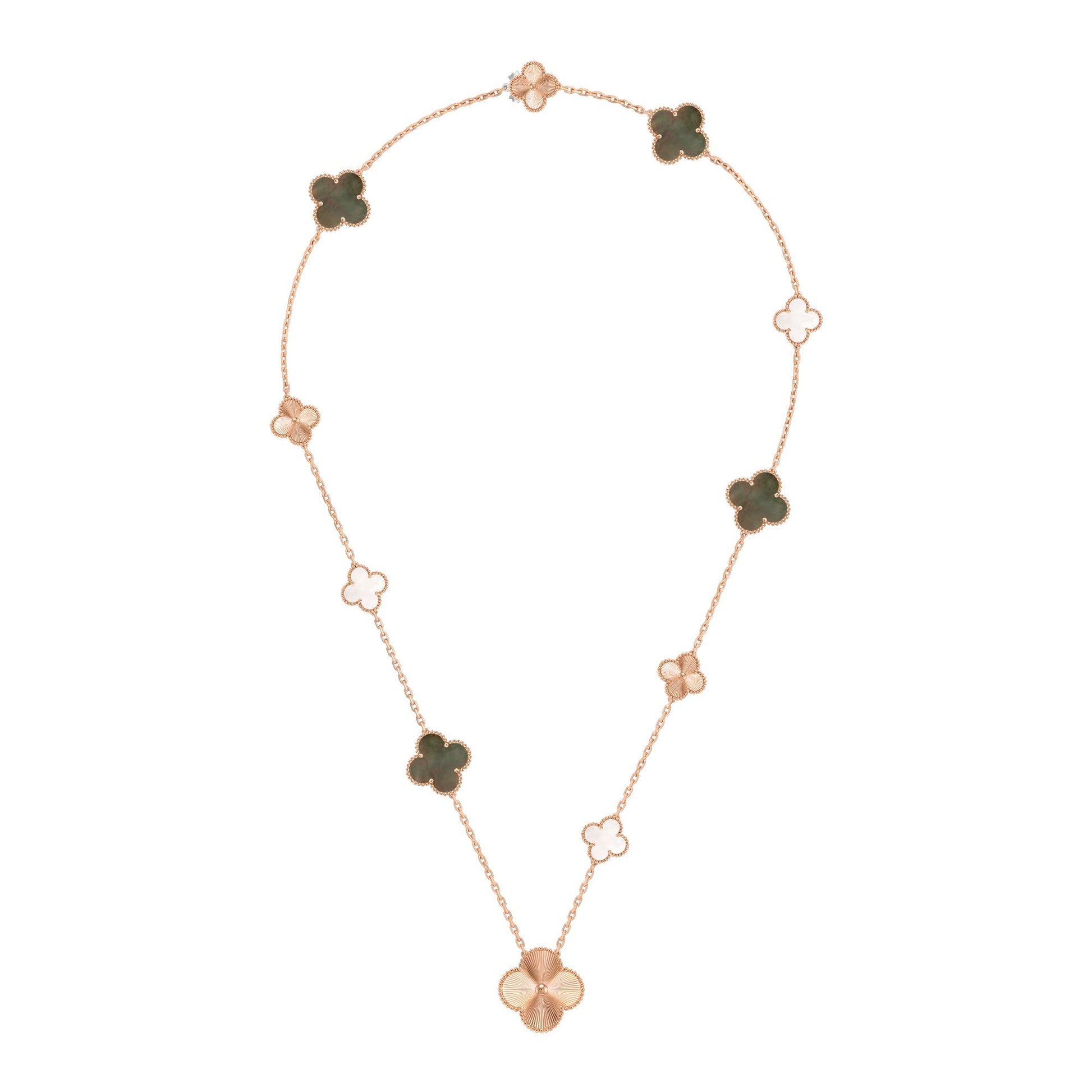 • Can be worn as a single long necklace with 11 four-leaf clover charms, measuring 86cm in length.
